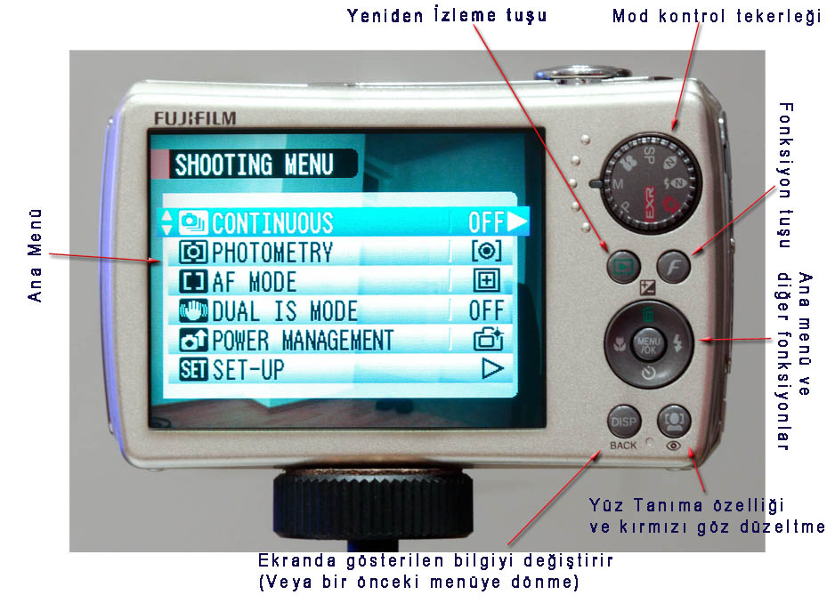 F200'ün menüsü ikiye ayrılmış. Bir kısmına "F" tuşuyla ulaşılıyor, geri kalanına Menu/OK tuşu ile. F tuşu ile ulaşabildiğiniz ayarlar: